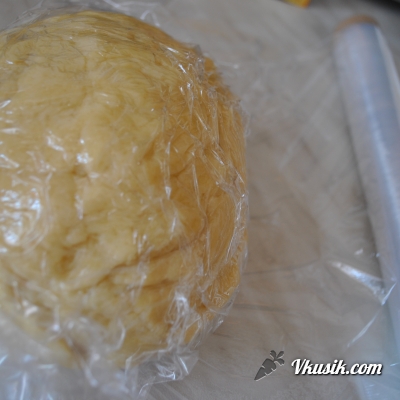 Шарик заворачиваем в пищевую плёнку и отправляем в холодильник на 1 час