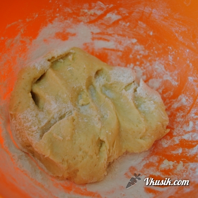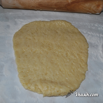 На присыпанном мукой столе раскатываем пласт теста, если скалка прилипает к тесту , смажьте её подсолнечным маслом