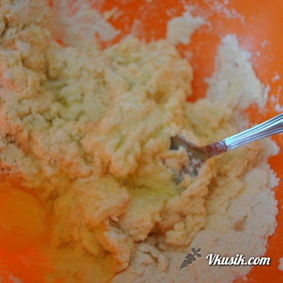 Затем соду гашёную уксусом, ванильный сахар, разрыхлитель и просеянную муку