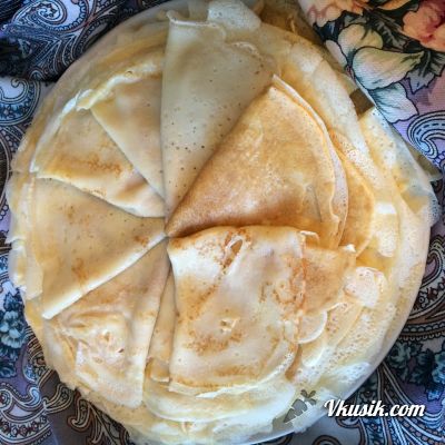 Выпекаем блины на хорошо разогретой сковороде по 1 минуте с каждой из сторон